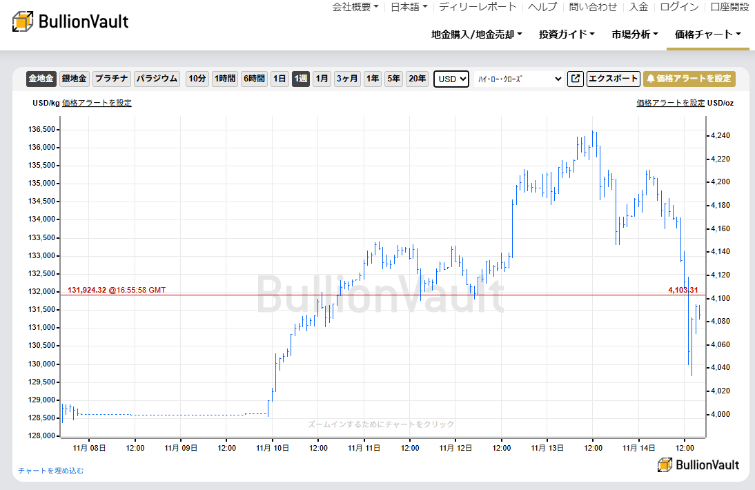 ニュースレター(2025年11月14日)利下げ観測後退で金価格は週間の上げ幅を削る